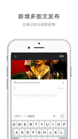 发布属于你的物品故事,支持单图文故事分享,丰富物品属性添加,社交平台分。