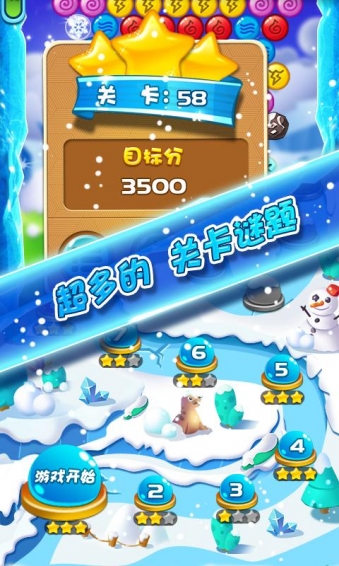 经典的泡泡射击玩法消除游戏-每关都有你需要通过你智慧收集雪花60个不同地图不同玩法的关卡