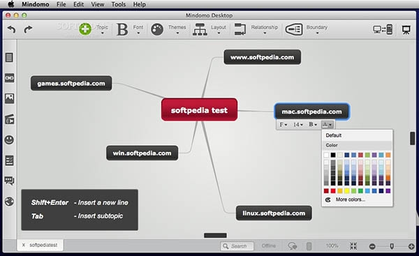 MindomoDesktop是一个可靠的思维导图的应用价值,当你需要安排你的想法,链接,网站,图片和说明,创造性的解决你的问题,并显示不同的关键概念之间的联系。
