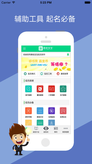 嘉铭宝宝起名iPhone版是专为IOS用户量身打造的一款起名改名软件。马上2016年猴年了,哪个父母不想给自己可爱的猴宝宝起一个大气响亮的好名字?嘉铭起名官网帮您给2016年的猴宝宝起一个好听又有含义的好名字。还在等什么?快来下载嘉铭宝宝起名iPhone版吧!嘉铭起名官网最专业的宝宝起名模式:十二大起名模式,云端数据分析引擎,结合真太阳时角和地区经纬度精确起名。最齐全的起名工具:重名查询、流行趋势、生肖起名、八字测算、五行查询、姓名打分、称骨论命、三世财运、天降吉名、生男生女。最贴心的陪伴:吐槽调侃,问题求解,起名说论坛让你畅所欲言,给你不一样的体验。还可以做任务得积分换礼物,你还等什么呢?
