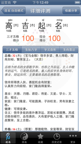 *提供好名收藏功能,起名过程发现好的名字需要后续比较,简单一键加入收藏夹,可供随时查阅