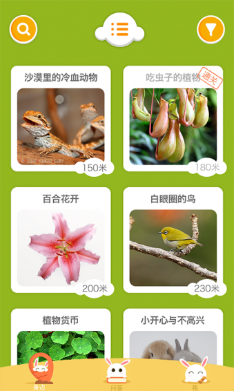 玩学兔app是一款将生活中实际物体与线上有趣、并富有教育意义的微课件相结合的玩学神器,它会帮孩子和家长们选择感兴趣的学习目标,并带领小朋友们找到这些目标的位置,通过生动有趣的、基于实物的点读课件,让小朋友们更直观的探索和学习大千世界的奥秘。【软件特点】