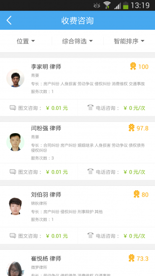 完善上个版本未实现的功能,新功能如下:1.免费咨询:无需花钱,免费发布法律咨询,上千名权威律师为您在线解答
