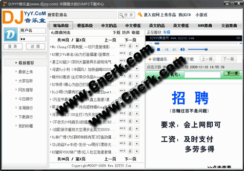 DJYYY音乐盒上线,具有“速度超快”、“音质超高”、“完全免费”三大特点.DJ舞曲无需下载,一点即播。(绿色版软件)绝无病毒、无插件,请放心使用。
