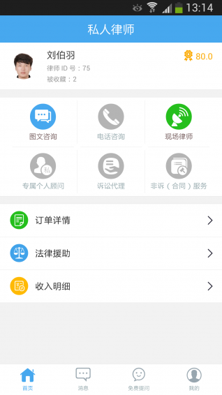 5.免费提问:以抢单的形式免费回答用户的法律问题