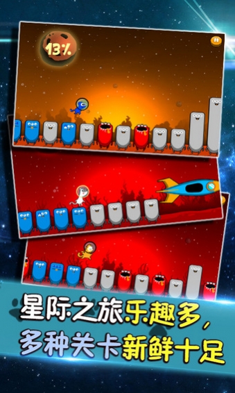 《跳跃猫》在旅途中撞破了飞船,水晶飘洒到各个星球上,为了捡回能源,它开始了它的历险记。该游戏是由分享时代发行的节奏类精品游戏,难易结合的60关,即满足了喜欢挑战的玩家的同时也吸引了娱乐休闲的玩家。全新的卡通角色结合每一关不同的画面风格,让玩家更能享受极致的视觉体验,玩家可根据自己的喜好从10余个不同的卡通角色中选出自己最爱的一款来挑战游戏,同时也有无尽模式来供大家玩耍,无尽模式随时更新,玩家每次锁定模式,均是一次全新的挑战、观感,玩的也更为酣畅淋漓!还等什么?快来下载吧!