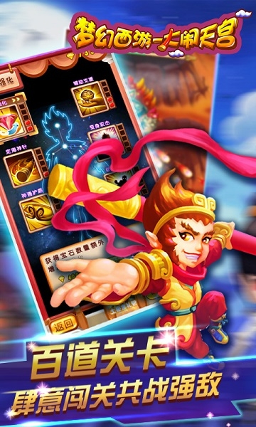 《梦西游-大闹天宫》是一款飞行射击游戏。游戏以孙悟空大闹天宫,消灭天庭势力为题材。多种敌人与BOSS的设定,多个关卡的选择,多种道具的购买,让你回味无穷。采用清新的画风、动听的音乐、流畅的手感等,让人无所不能。赶紧化身为齐天大圣,展开一段冒险之旅吧,我们都在等着你,最强的人会是你吗?