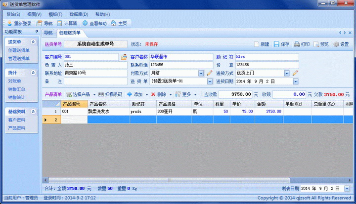 ※软件提供了详尽的产品管理和客户管理。※软件在开具送货单时,无需提前预置客户资料和产品资料即可即时开单。