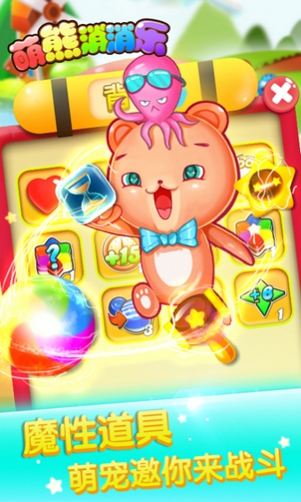 2015年最火热的消除游戏《萌熊消消乐》强悍来袭!!《萌熊消消乐》是在原有的经典策略型三消模式上,增加了各种道具使游戏更有趣味性,每天登录也有无限大礼等你来领取!新版本画面更加精美、上手更加简单、休闲有趣、有惊喜有挑战,5大类型、超过120个精心设计的关卡(持续更新中),是您平常休闲娱乐、打发时间的最佳选择,绝对让您爱不释手!