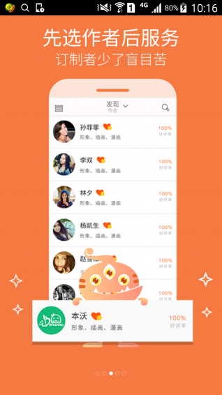 2、发现:发现订制需求、发现优秀作者、发现原创作品、发现二次元活动;