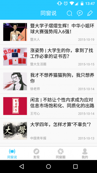同窗说是一款立足于本校生活的手机社区生活服务应用软件,这款软件可以为用户提供个性化的高品质社交服务功能,让你能够在学校中结识更多的同窗好友,共同在学校中编织出你们的青春欢乐。