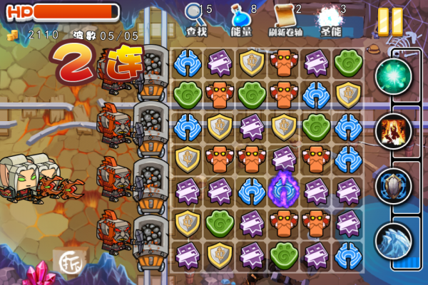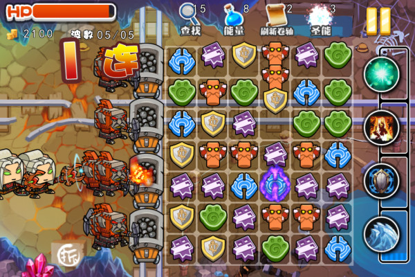 塔防游戏玩得有点腻?传统对对碰又太简单了?来挑战这个游戏吧! 塔防和对对碰结合,全新的游戏模式,多样化的玩法,炫丽的技能,无论你是想一步一步地通过消除方块击退敌人还是集聚能量用华丽的魔法轰炸怪物,你都能在这里找到乐趣! 锻炼你的脑力,展现你的智慧,创造最大连击,用一连串的攻击和技能保卫你的家园!此款游戏是以魔兽世界为主题元素的游戏,把三个或以上的方块移到一起就能消除方块,发出一次攻击,并且获得法力值,法力值能发动各种魔法攻击以及治疗,消除三个以上的方块能获得更强力的攻击,并且获得一个圣能消除圣能能发动一次强力攻击 还有更多的游戏玩法,到游戏里面体验吧!