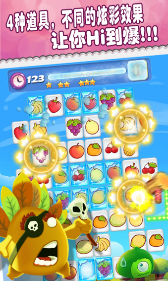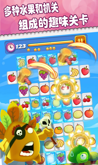 搞怪的水果族长每天都在收集着自己的水果。今天水果族长来到的崭新的热带雨林,在他面前的是种类丰富的水果。然而热带雨林为了不让水果族长轻易拿到试过,设下了重重难关。只有挑战胜利,才能发现到新的水果拿到奖励。水果连连看完全免费!!!充满了种类非常丰富的水果,从新手到老鸟都能开心享受的连连看消除游戏只要是2个相同水果的方块!只要这2个相同的方块能在规定连线规则内!轻点这2个方块,就可以消除啦~挑战规则相当简单~