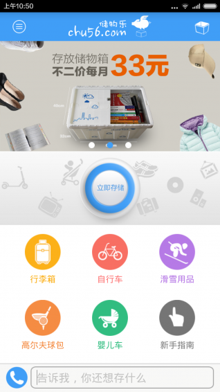 ****品质生活,源自空间****。“储物乐 (chu56)”是一个面向个人、家庭及中小企业的O2O仓储服务,在空间成本高昂的城市、地区,通过物品存储托管的模式,为用户提供额外空间,实现实物版的“云存储”。
