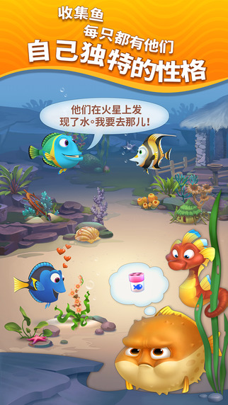 ● 独特的游戏玩法:交换、匹配、设计、装饰、与小鱼嬉戏、照料小鱼 — 这里应有尽有!