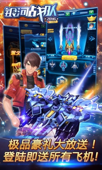 高颜值欧派美女,极上新作,飞机天团出击!2016业界最良心的打飞机游戏之《银河战队2016》火热上线!国内首款团队作战,三架飞机一起来,团队战才是真正的王道!弹幕丰富,战机繁多,炫爆的场景,高颜值欧派美女让您流连忘返!你作为战队统帅,需要组建自己的战队,灵活运用领军者和天空战机组合,在浩淼的宇宙之中,击败外来入侵者,保卫银河系。华丽的画面配上最经典的手指触屏操作,让战机划破苍穹!Boss追击,盗梦空间,多种特色玩法让您爱不释手。