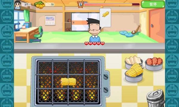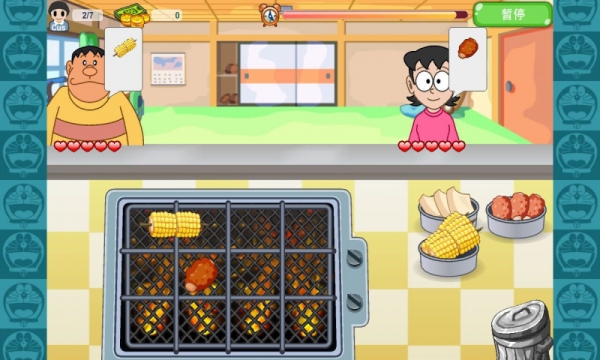 机器猫烧烤店手机版是一款轻松休闲的经营游戏,玩家将和万能的机器猫一起经营一家烧烤小店,为小伙伴们供应美味的食品;每一位朋友要的东西都是不一样的,而且像胖虎这样的还很没耐心,玩家烧烤的时候可要保证快速加准确啊。