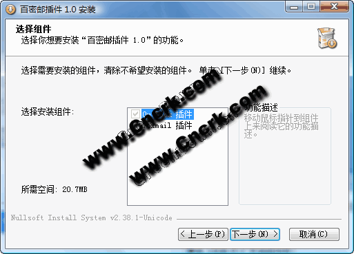 在不改变用户现有配置,不改变用户使用习惯,不用更换程序或备份数据的情况下,就可以在现有系统中升级成安全邮件系统。百密邮插件可无缝嵌入Outlook(2000/2002/2003/2007)/ Foxmail(6.5)中