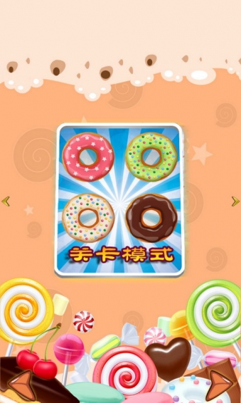 优美的音乐,可爱的画质。滑动屏幕,消除甜甜圈。全民休闲,上手简单,只要轻松点击相同颜色的蛋糕圈圈即可完美消除,看似简单而又不简单,关关挑战,你会发现这是在挑战你能力,让你欲罢不能,爱不释手。据说,每个人儿时的梦想就是有吃不完的甜甜圈O(∩_∩)O。玩儿法:首先进入游戏主界面,滑动屏幕,如果有三个或者三个以上的甜甜圈相邻并且在同一行或者同一列,则消除。完成相应的分数,则闯关成功。游戏中会出现神秘道具,还在等什么,快来一起玩耍吧。