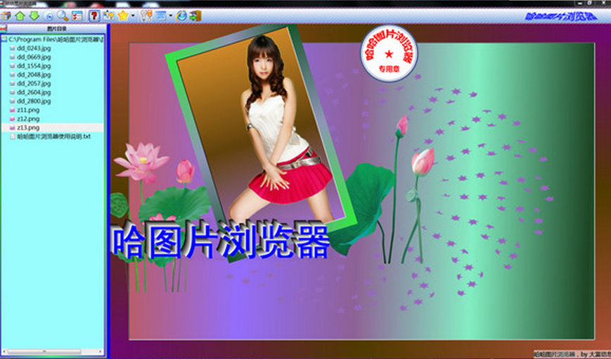 哈哈图片浏览器,本软件是一个专门用来浏览、阅读图片的工具,具有动感浏览图片等特性,是其他软件所不具备的。本软件对图片按阅读方式进行了特别的精选与安排,并进行了长期使用与优化,所以特别适合需要浏览大量图片的使用者,比如图片爱好者、图片工作者等等。本软件目前提供书本阅读模式、普通阅读模式、经典阅读模式、动画阅读模式等多种阅读模式供你选择。本软件是个免费软件。特点;图片可以横着看、竖着看、歪着看;可以像电影一样播放;可以像看挂在墙上的相片一样看;可以加相框、边框、背景、装饰物;可以像画册一样观看。可以设置自动启动动态场景与图片运动方式。全部图片修饰功能自动对原图起作用,不对原图进行任何改动。是一个难得的MTV式相册软件。【软件特点】