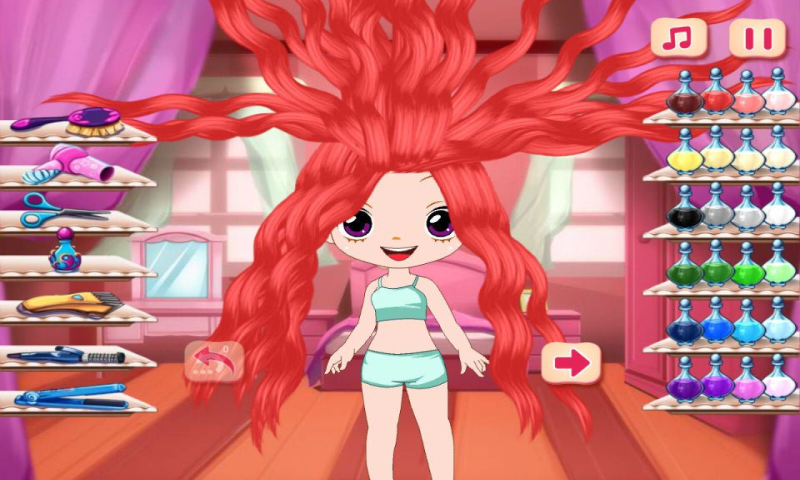 超级个性美发师是一款模拟体验美发的休闲类游戏,进入游戏后你可以自由的随意处理顾客的头发,变成你想要的发型。选择剪刀,可以剪掉你认为多余的头发。剪多的时候选择接发器给头发接长。选择需要的颜色给顾客染发;选择梳子或者卷棒给顾客制作发型。随心所欲,制作发型。当你制作完成自己认为满意的发型之后,还有大量的服饰供你选择给顾客穿衣打扮。更多惊喜等着你。