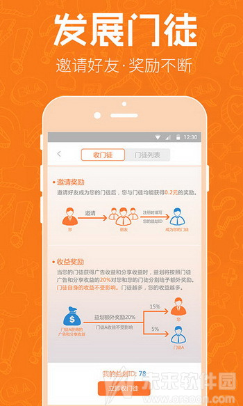 【收益功能】:广告收益、分享收益、邀请收益、任务收益(特别提示:如果您看不到广告这部分的内容,说明广告商暂未对您的所在地区进行投放,但是这并不影响您使用其他收益功能)
