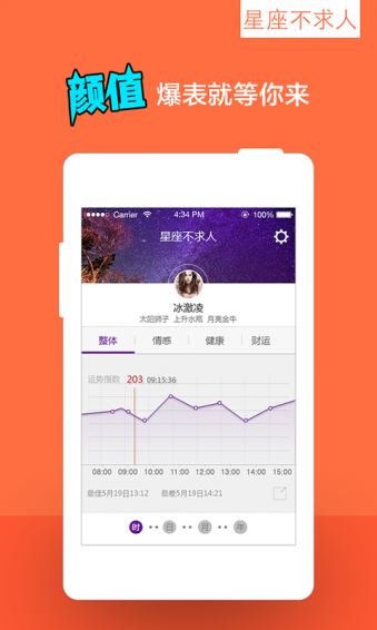 3、全球首创的星座运势走势图!~简单到像看股票K线图一样直观查询每日财运、桃花运、股运、牌运;