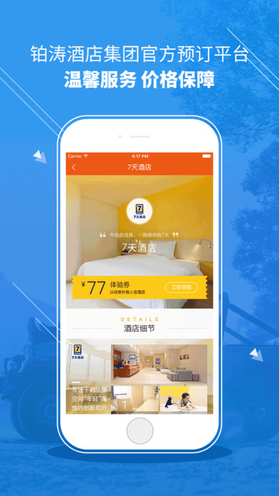铂涛旅行APP定位于以酒店预订为承载的移动互联网旅行社交电商应用,针对希望获得更好旅行体验的消费者,提供一体化旅行解决方案。涵盖酒店预订、周边攻略、地道目的地游记,以及陆续提供专车接送、租车、景点门票、导游、旅行社交等全方位旅行服务。