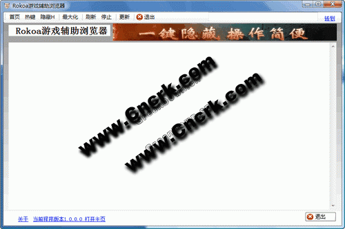 Rokoa游戏辅助浏览器,可以使用于任何网页游戏,可一键隐藏快捷功能最大化、标准化显示简化了浏览器的功能界面简单、操作方便不会出现假死的现象