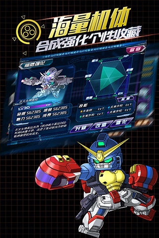 《SD高达手机版》依旧延续了经典机器人中最经久不衰的元素,以当下最流行的顶级画风演绎,同时游戏画风采用高端的2D影像,看得到的视觉福利,让你在进入游戏的那一刻就开始大饱眼福。