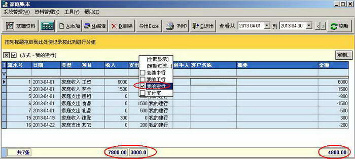 6.查询相关银行账号、支付宝、现金进出情况非常方便和容易。