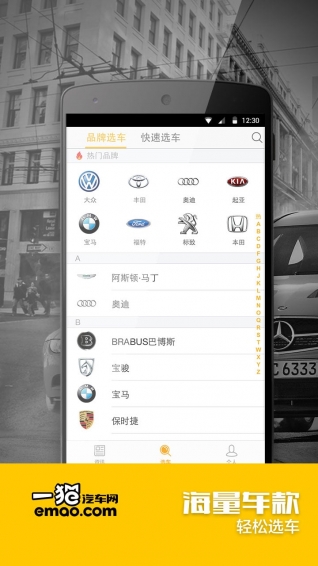 多种选车方式--品牌选车、快速选车、趣味选车、自定义搜索车型,多种选车方式消灭买车选择困难症,支持车型加入对比,支持经销商询价;