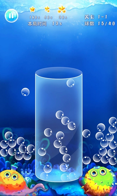 还记得童年时的游戏吗?蓝色的小管子蘸上晶莹的肥皂水,小嘴靠近管子,轻轻一吹。哇!可爱的泡泡就从小管子里诞生啦!小泡泡在阳光的照射下,呈现出晶莹剔透的萌态。由童年游戏引发的灵感,这款小游戏诞生啦!你的目标就是把小泡泡吹起来,让它们尽数掉进瓶子里。游戏共有五大关卡;海底世界,魔法森林,冰雪奇缘,糖果屋和快乐圣诞。每个小关卡的瓶子形状各异,也会有不同的障碍物,因为我们的目标和正你相反,就是阻碍你的泡泡掉到瓶子里,就看你能不能排除万难拿下所有关卡了!