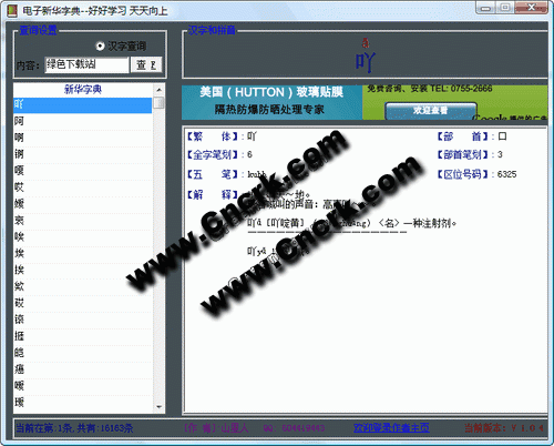 〖新华字典〗该软件可能是目前网上最好的字典软件。全面收集最新版本的新华字典16163条汉字,本软件不断升级,精彩无限。是一个精巧、全面、新颖的桌面文科学习工具。是一个优秀的学习工具助手。新华字典包括汉字拼音、笔划、部首、检字法、五笔编码,字源、组词、举例、意思等等。详尽、齐全、细致、深入举例等等。新华字典包括模糊检索功能。方便、快捷、高效。是一款不可多得的优秀工具软件