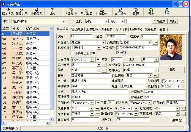 4、人员档案可包含相片,除人员档案外,工资及相关数据按月保存。