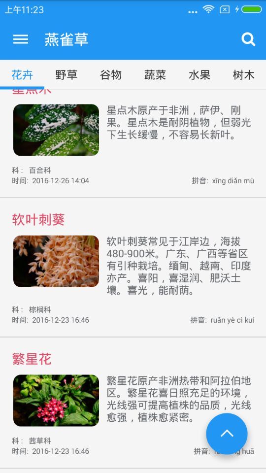 燕雀草app是一款能够带你认识各种植物的手机软件,该软件为用户提供了各色植物的习性、生长环境、中药特性等内容,还会将植物从开花到结果的过程直观的呈现给大家,让您可以增涨见识。