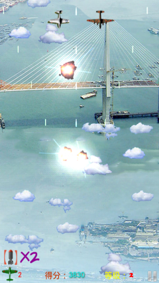 新的好玩的游戏发布了,这是一场很残酷的战争,敌人的飞机数目非常的多,玩家的能力决定能否赢得这场战争,游戏画面精美,操控简单,您可以在一片清爽的空中画面里,爽快打游戏! 比较传统的空战游戏,玩家控制战机在躲避敌人子弹的同时攻击敌人,你须要打败所有的敌人后才能进入下一关卡,游戏中玩家击落敌机有几率掉落强大的武器,更多关卡等着你来挑战。