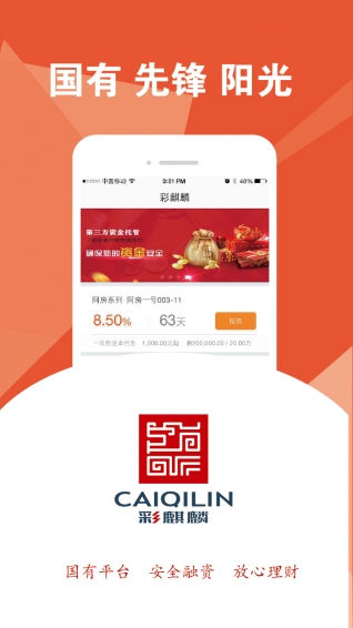 彩麒麟是由北京市朝阳区国有资本经营管理中心等三家股东共同出资,由北京京赢科技发展有限公司运营的互联网金融平台,成立于2014年11月。彩麒麟致力于打造以财富管理、投资管理、互联网金融三位一体的投融资链条和综合性金融服务体系,成为金融市场的引领者。彩麒麟平台采用第三方资金托管模式,严格隔离信息流和资金流,确保投资人资金安全。