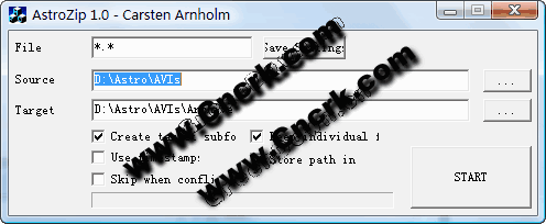 AstroZip提供了一种简单的替代方法来创建压缩文件。这种方法压缩将创造一个单一的大量文件档案。您使用“保持单独的文件”选项,并为每一个源文件夹中的文件会自动压缩文件(但具有相同名称的文件将在一个共同的压缩文件放入),输出是在目标存储文件夹。