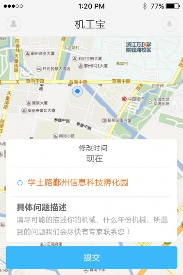 机工宝客户端是宁波搜油信息科技有限公司全新打造的依托于机械设备上下游产业并为机械设备行业提供相关服务的软件。工厂机械设备维保需求在机工宝发布,我们为闲置技工提供抢单服务,通过机工宝预约维修时间、地点,技工抢单后依据订单到维保需求企业服务,服务完成后协商价格,并确认支付,整个过程及时、高效、便捷,让闲置技工无忧,让机械设备维保不再困扰。