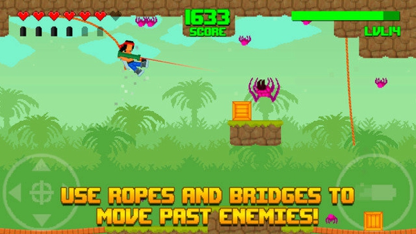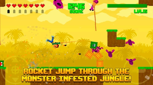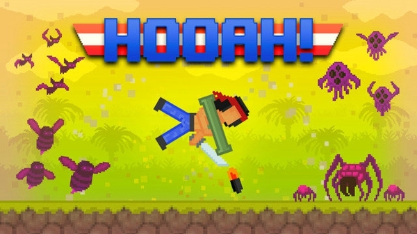 Astrosnout推出了一款全新的横版过关游戏《怒火丛林 Hooah!》,玩家在游戏中要扮演一名战士,穿越充满障碍的热带雨林。本作是一款像素风格的冒险射击新作,玩家将扮演一名手持榴弹炮的战士,头绑红发带,形象很有《第一滴血》系列中Rambo的感觉。在丛林的场景中,遍布着各种巨型蜘蛛、凶猛的杀人蜂等,而玩家手中唯一能够使用的就是威力强大的榴弹炮。