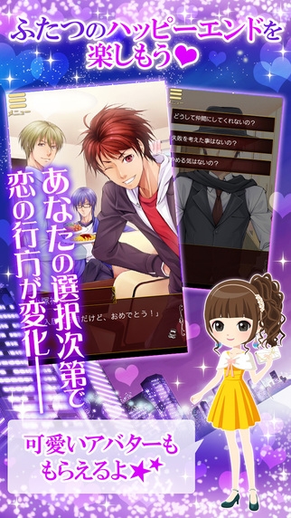 与角色说话是会发生选项,根据选项不同会改变好感度,然后故事也会发生变化,。总有3话的结局,有两个像是RomanticEnd和DramaticEnd。时髦道具有100种以上!自我组装打扮!