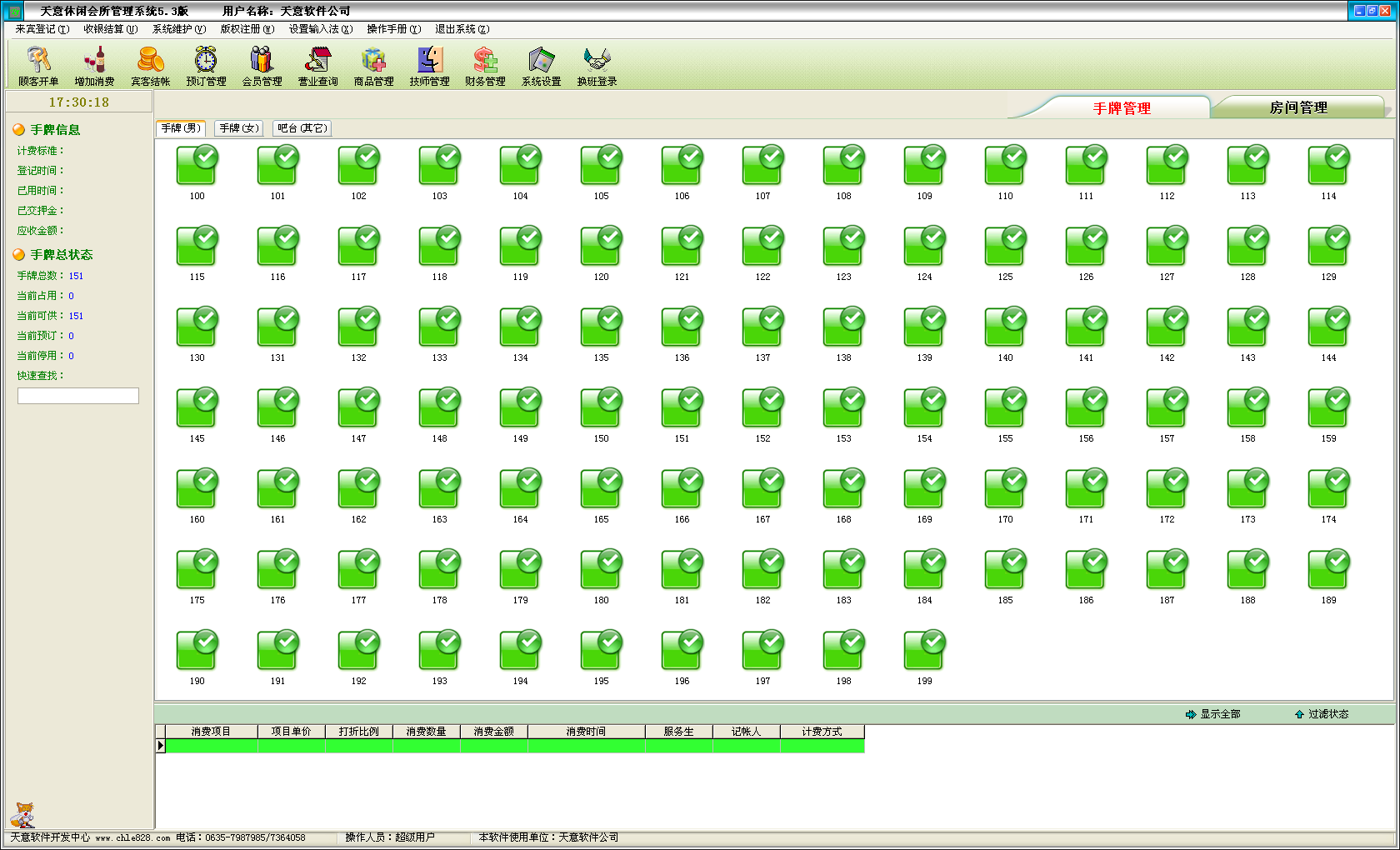 天意休闲会所管理软件是一款专业的会所管理系统,它集前台收银管理系统、员工提成管理系统、库存管理系统、会员管理系统、财务管理系统等强大功能为一身,系统界面简洁优美,操作直观简单,无需专门培训即可操作使用。天意休闲会所管理软件是一款充分体现了休闲娱乐行业的管理实情,为他们量身定做的专业管理软件。天意休闲会所管理系统是休闲娱乐中心、酒店宾馆、洗浴桑拿等会所制企业实现管理信息化理想的管理软件。