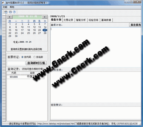 金牛股票助手是帮助广大中国股民炒股的好工具,由多年操盘经验的职业股民开发,它可以帮助股民制定每日计划,记录每日操作,适时行情查询和计算收益和成本,提供强大的智能分析统计功能,洞察主力行为,同时附送金牌操盘规则,让广大股民可以总结经验和教训,创造更好的操盘业绩!金牛股票助手分为免费版和收费版,收费版每年收使用费100元,提供比免费版更加强大功能和更好的特性,并享受收费期限内更好的升级和其它服务。如你要购买收费版,请直接联系软件所有者,竭诚为你服务!