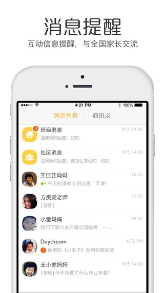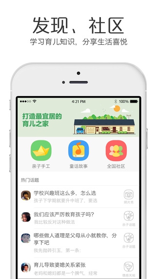 家园沟通——上班时,出差时,你可以随时通过贝聊了解动态,宝宝在幼儿园吃什么,学什么一目了然。幼儿园通知置顶,方便查看,绝不漏掉。社区沟通——贝聊社区有很多聪明的宝爸宝妈,在贝聊,你可以跟他们聊聊你的育儿烦恼,分享你的育儿快乐。你还可以学到很多陪宝宝玩的实操技巧和方法。让家长和宝宝一起快乐成长。