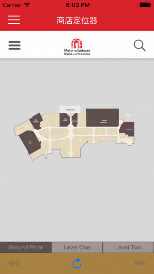 耳目一新的、现代用户界面设计;购物中心内部指路功能能够引领您前往您最喜爱的商店,并附有一份可下载的商店名录;