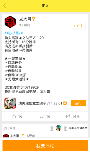 功夫熊猫3蜂窝助手汇聚海量手游辅助脚本资源,手游脚本需求随便提,直面功夫熊猫3辅助作者。