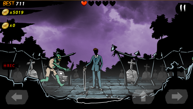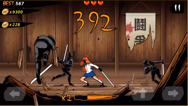 本作拥有简单的玩法以及如割草般的爽快感,在上手之后就有一种停不下来的感觉。游戏到底如何?请先来欣赏下游戏的视频吧。从视频中不难看出,游戏的玩法十分简单。玩家所控制的角色要应对来自三个方向出现的敌人,并且要根据敌人出现的时机迅速斩杀掉目标,否则就会被敌人所斩杀。而在操作方面也比较简洁,玩家只需要控制屏幕中出现的三个按键,就可以完成对角色的攻击和移动。
