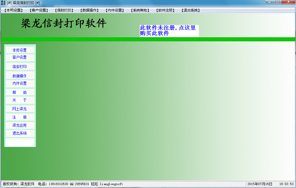 梁龙信封打印是一款安装简单,绿色共享软件,下载后直接安装,无需解压缩,无插件,使用方便,诱导式输入让你使用更加方便,输完后只需回车就可以切到下一步操作,查询快捷,多种查询模式让你查询更快捷,简码查找功能,如你需要查找梁龙软件只需输入llrj,让你轻松查询您的客户并可以作为企业通讯录使用。【软件特点】