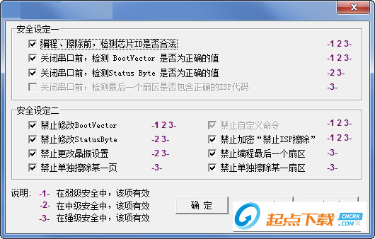 [编程、擦除前,检测芯片ID是否合法]选中此项可避免用户选错芯片。例如:用户芯片为921,但选择了922时,就有可能破坏芯片内的ISP代码。